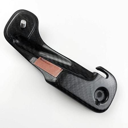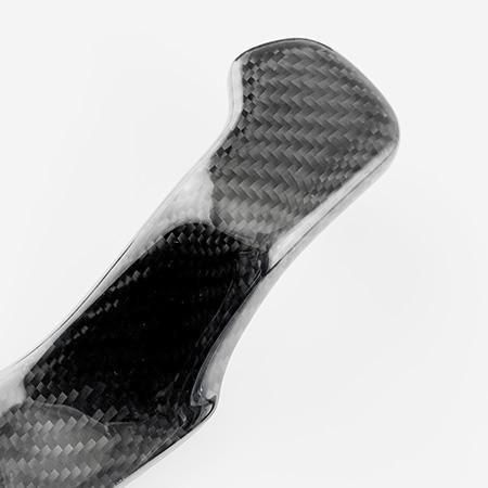 企画段階では、黒ゲル仕上げのFRP素材で検討していたのですが、やはり内装パーツはCARBONで統一したかったので、CARBON繊維を張り込むにはかなり難易度の高い形状をしていますが、製法を見直しなんとかCARBONで商品を発売する事が出来ました。