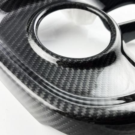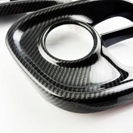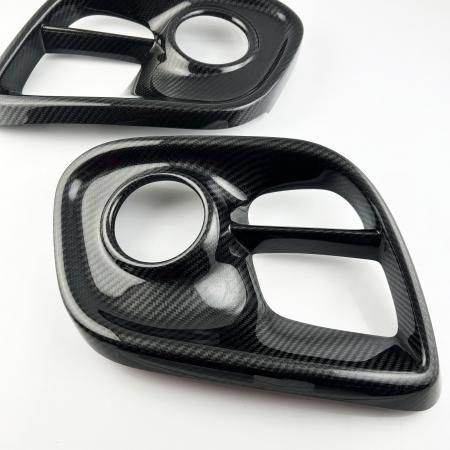 この樹脂パーツに被せるカーボンパーツが「カーボンフォグライトカバー」で、オリジナルと同形状でただ被せるパーツではなく、THREEHUNDREDらしくデザインにひと手間加えた商品を作りました。